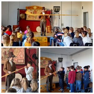 Am Mittwoch, dem 27.11.24 erwarteten wir höchst herrschaftlichen Besuch, und zwar vom Universal-Musikus Professor Pizzicato, der für die 5. und 6. Klassen beider Sportschulschienen ein Klangfeuerwerk in zwei Ausfertigungen vorbereitet hatte. Mit viel Heiterkeit und Wortwitz führte er durch das vortreffliche Programm, bei dem es reichlich Gelegenheiten zum Mitmusizieren geben sollte.